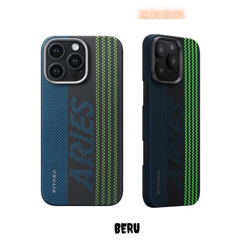 「PITAKA × Aries」iPhone 16 Pro Max用 ルミナス ケース MagSafe対応 蓄光 スマホケース アラミド繊維製 超極薄・超軽量 カーボン風 ワ