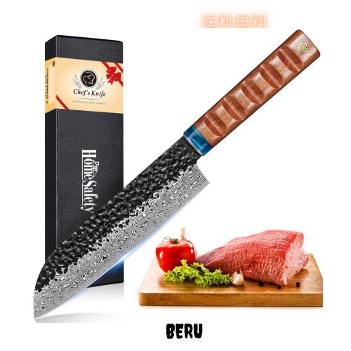 【ハンマリングと鍛造テクスチャー&多目的キッチンナイフ】 ダマスカス包丁は、その美しい模様で世界的に有名である。 HomeSafetyダマスカス包丁の手打ちの表面と独特の水波紋を研磨することは、驚くべき優れた技術を示すだけでなく、抵抗力と食べ物への癒着を減らし、食べ物の最高の風味を確保するのに役立つ。あらゆる種類の肉、野菜、果物、パンを刻んだり、スライスしたり、さいの目切りにしたり、みじん切りにしたりするなど、毎日のキッチン作業を簡単に処理できます。 プロのシェフや料理愛好家に非常に適しています。