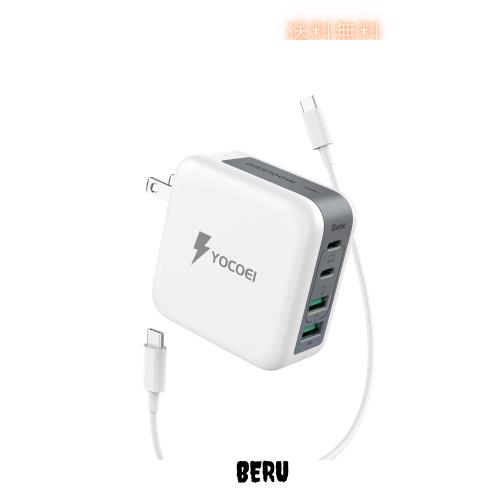 YOCOEI 100W PD充電器 4ポート世界最小クラス (GaN +独自iSonic技術/USB-A×2 USB-C×2/折り畳み式 USB急速充電器)100Wケーブル付属 PD3.