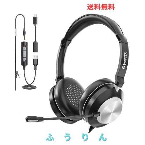 ◆商品名:Voistek アップグレードヘッドセットUSB/Type - C/3.5mm 両耳対応:新型ノイズキャンセリングマイク付き有線コントロール PC 用ヘッドホ