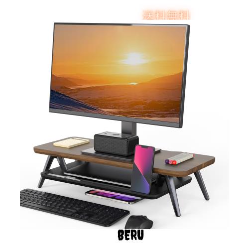 ◆商品名:Fenge モニター台 机上台パソコン台 机上ラック 2段 木製天板 アルミニウム製脚 デスクトップ用 机上 モニタースタンド 机上台 pcモニタ