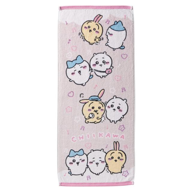 ちいかわのキャラクターが集合! 綿100%なので肌触り柔らか、吸水率も満足な、使い勝手の良いタオルです。