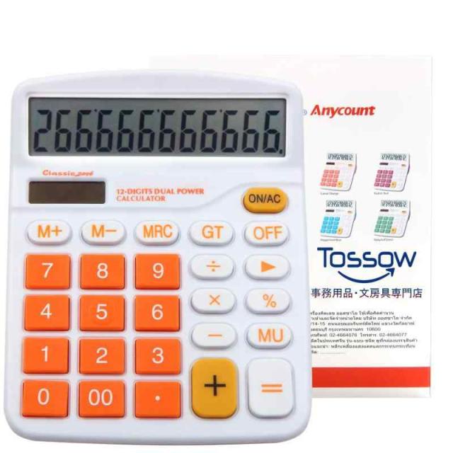 TOSSOW 電卓 12桁 時間計算 大型 おしゃれ 簿記 オフィス用 ポータブル大型液晶ディスプレイ ソーラー 電池のデュアルパワー電子計算機 (オレンジ)
