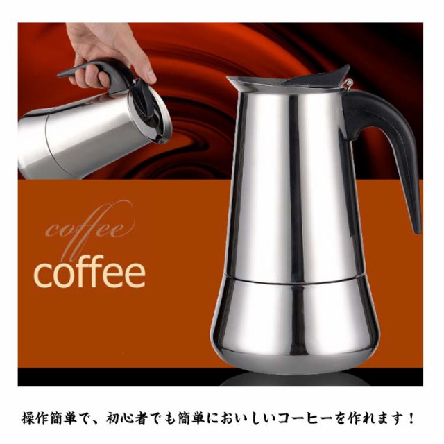 | 【コーヒーメーカー】【2/4/6杯】 操作簡単で、初心者でも簡単においしいコーヒーを作れます! シンプルデザインで使いやすいコーヒーメーカーです。 コーヒー好きのあなたにおすすめアイテム! ステンレス製のため、器具の内部、外部ともに汚れが付きにくく、長く衛生 的に使用することができます。 美味しいエスプレッソを作るときにフィルターが絶対必要です。 基本的な部分はすべて取外し可能となり、衛生的にも心配ありません。 ハンドルは、加熱後には念のためミトン等での取り扱いをおすすめしていますが、弱火で正しく加熱すれば、熱くなることはありません。 ガスストーブ、電気ストーブ、アルコール ストーブ、電陶ストーブ、卓上コンロ様々なストーブに対応! 毎日のブレイクタイムから来客時まで活躍します。 母の日や父の日のギフトとしてや、一人暮らしを始める方へのプレゼントとしてもおすすめです。 | |