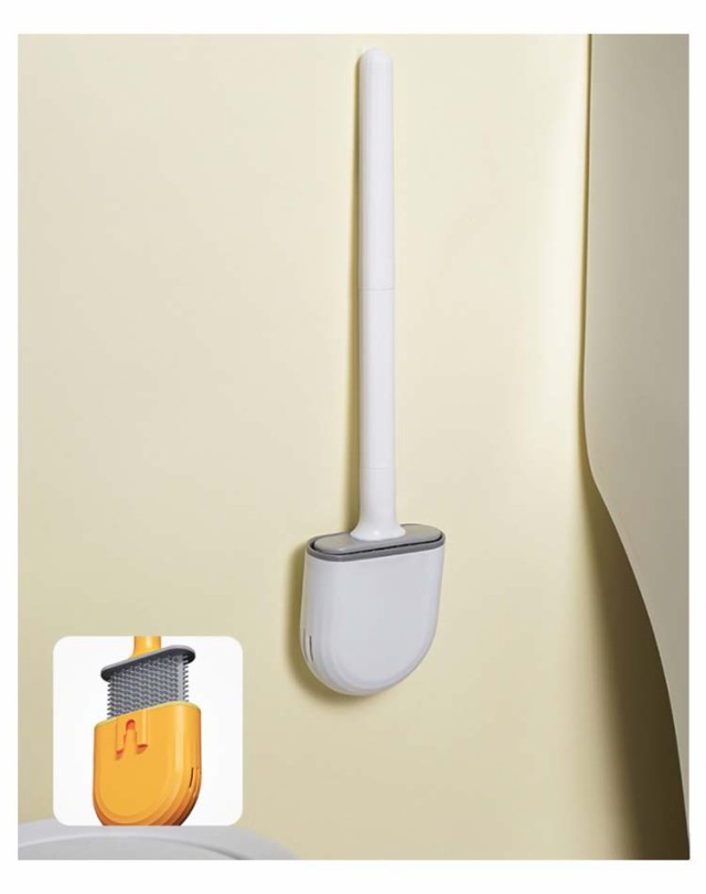 | 便器の形状によって曲がる素材で、すみずみまで綺麗に掃除できる♪ スリムで柔軟性のあるブラシヘッド、フチ裏など便器のカーブに合わせてすっきり掃除できます。 シンプルでコンパクトなトイレ掃除用ブラシ、水切りよく、乾燥しやすく、衛生的で臭いがない。 壁掛けケース付きで、場所を取らず、省スペースに収納できます。 | |