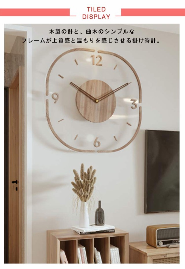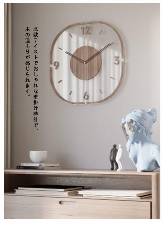 掛け時計 透明 静音 木製 壁掛け時計 ウッド クリア 時計 壁掛け 掛時計 かべ掛け時計 音がしない 子ども 見やすい 木目調 天然木 ウォールクロック 北欧 モダン シンプル ナチュラル インテリア 北欧 寝室 リビング ダイニング ギフト