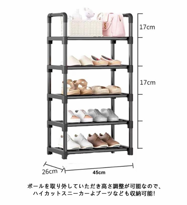 | 組み立て式なので、分解・再組み立てが可能です。また、軽くて道具不要で組み立て可能なので、女性一人でも簡単に設置ができます ポールを取り外していただき高さ調整が可能なので、ハイカットスニーカーよブーツなども収納可能! 幅広い用途があり、靴ラック、小物置き、おもちゃ棚、衣類棚などとして利用できます。 玄関、廊下、寝室、台所、浴室など、どこにでも置けて、スペースを節約できます | |