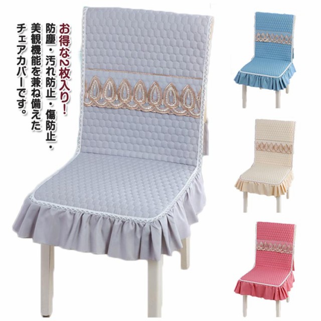 2枚入り 椅子カバー 座面&背付き椅子カバー フリル付き レース おしゃれ 北欧 座面クッション チェアカバー 椅子用シート クッションカバー 椅子背もたれカバー かけるだけ 装着簡単 ずれ防止 敬老の日 お中元 母の日 父の日 プレゼント ギフト