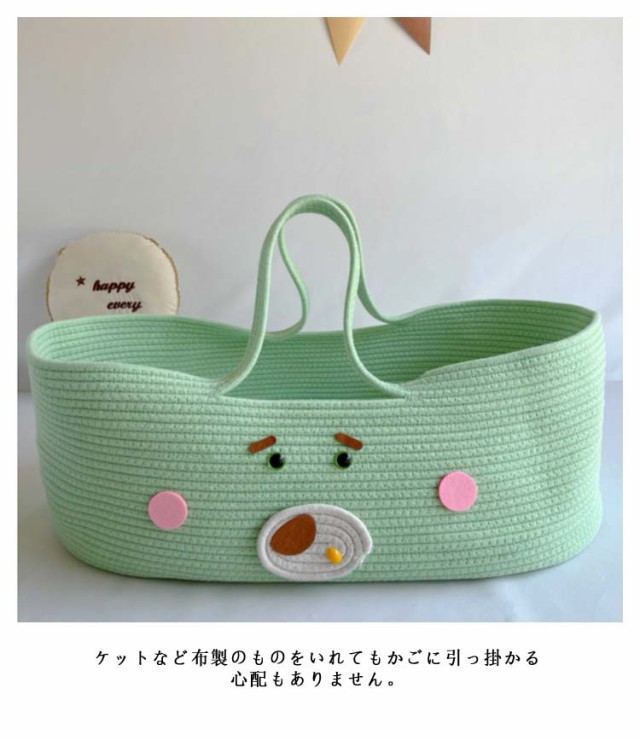 クーファン かご ベビーバスケット ベビーキャリー ベビーベッド 籠 バスケット 赤ちゃん 持ち運び コンパクト ベビー クーハン 添い寝 お昼寝 ロープ編み 折りたたみ ベビー用 赤ちゃん用 シンプル 春 北欧風 ギフト ベビー用品