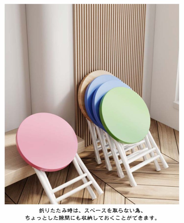 折りたたみ スツール 丸椅子 組立不要 椅子 おしゃれ チェア 北欧 木製 丸イス 丸いす いす 折りたたみチェア シンプル かわいい 木製スツール 折り畳み イス 背もたれ無し コンパクト スリム 在宅ワーク 玄関 リビング 新生活