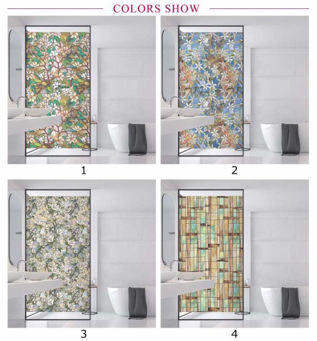 58×200cm 窓ガラスフィルム ステンドグラス 目隠しシート タイル 花柄 総柄 防水 はがせる 装飾フィルム 窓用フィルム シャワールーム お風呂 プライバシー 対策 ガラスシート 窓シート レトロ ヴィンテージ おしゃれ 美しい 水で貼る 貼付け簡単