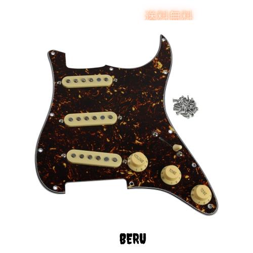 FLEOR アルニコ 5 配線済みストラト ピックガード 3 シングルコイル ピックアップ搭載エレクトリック ギター ピックガード - ブラウン ト