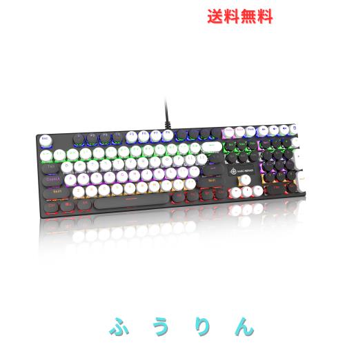 有線パンクキーボード メカニカルキーボードノブ付き レトロなラウンドキーキャップ タイプライター 赤軸 108キー フルキーアンチゴース