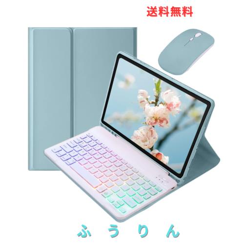 カラフルバックライトiPadAir11インチ (M3,M2, 2025/2024)/ iPad Air5 Air4 2022/2020 キーボードケース マウス付き お洒落 可愛い バックライトキーボード ケース マグネット分離式 女性 学生 ビジネス ,霧ブルー+白