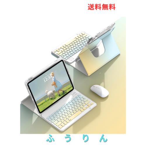 マウス付き iPad 10 2022/iPad 11 2025キーボードケース おしゃれ グラデーションカラー 360度回転式 iPad第10世代 iPad第11世代 ケース
