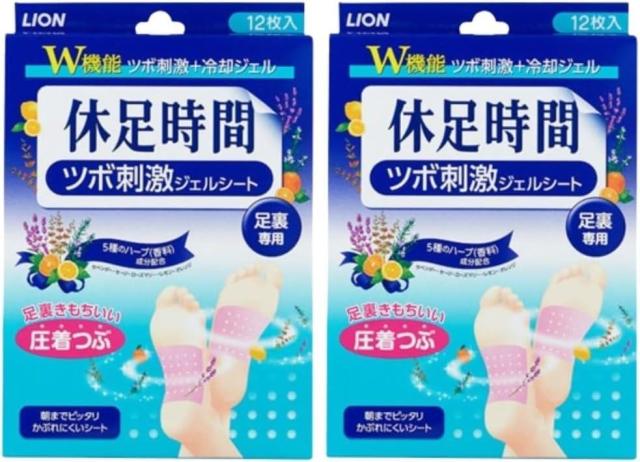 2個セット 休足時間 ツボ刺激 ジェルシート 足うら 冷却シート 12枚 愛知北倉庫