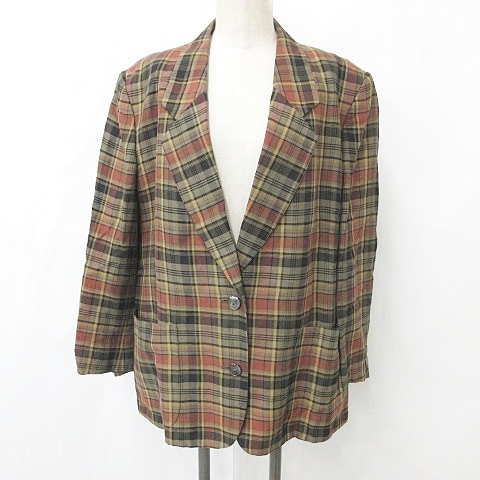 【中古】バーバリーズ テーラードジャケット 長袖 シングル チェック柄 リネン 茶 黒 赤 ブラウン ブラック 15BR