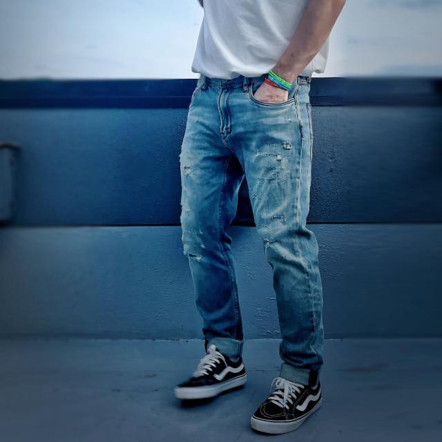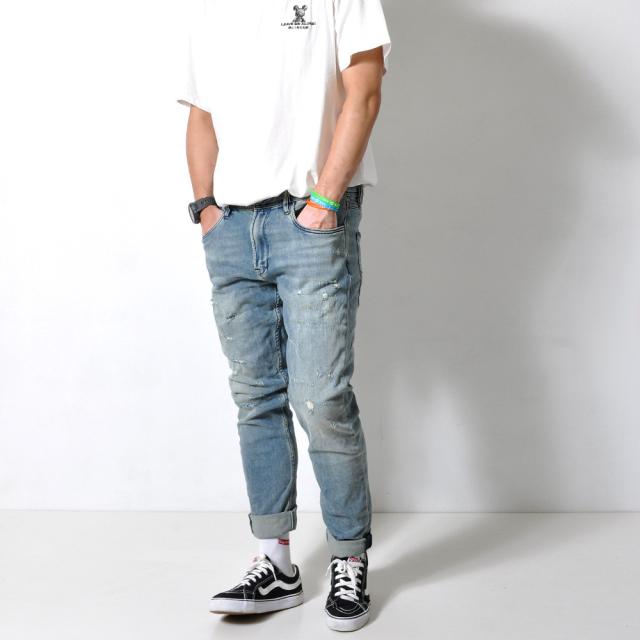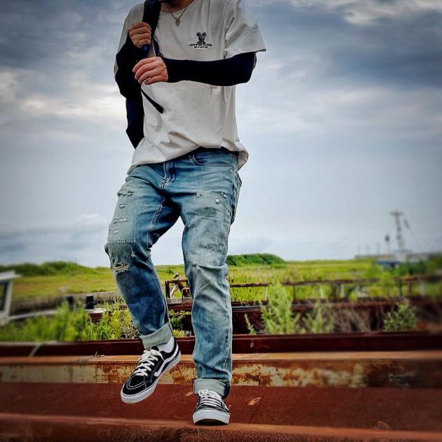 自然な色落ちダメージ加工がヴィンテージ感漂うこだわりが感じられるダメージデニム