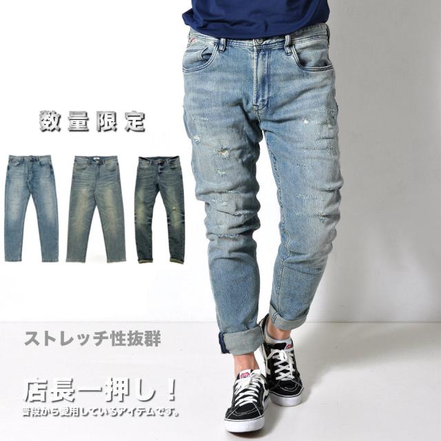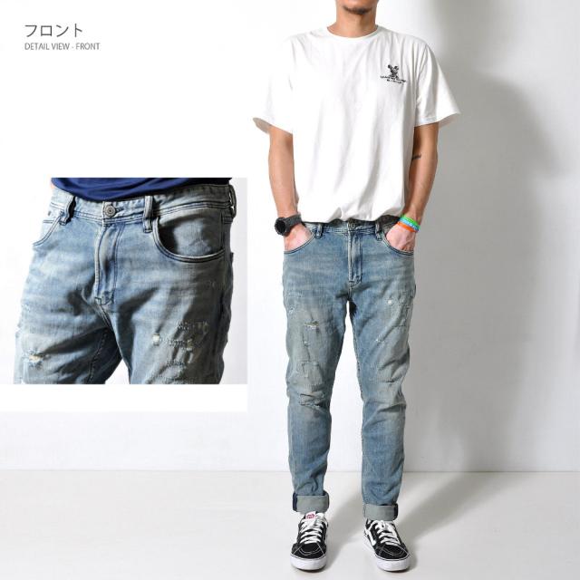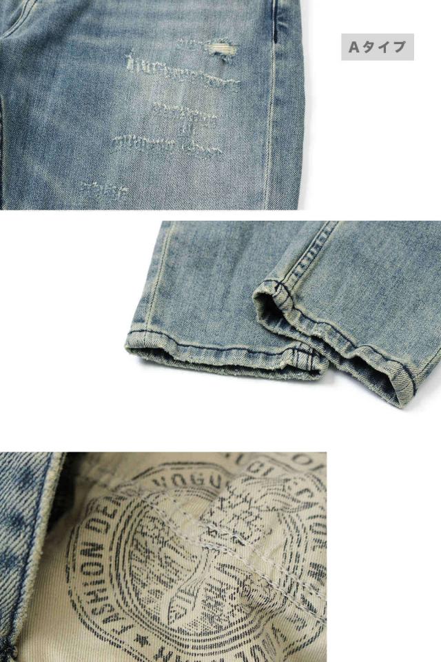 tsa ダメージ デニムパンツ ビンテージ メンズ ジーパン おしゃれ かっこいい ボトムス ジーンズ#Jea152c1 M便 BL
