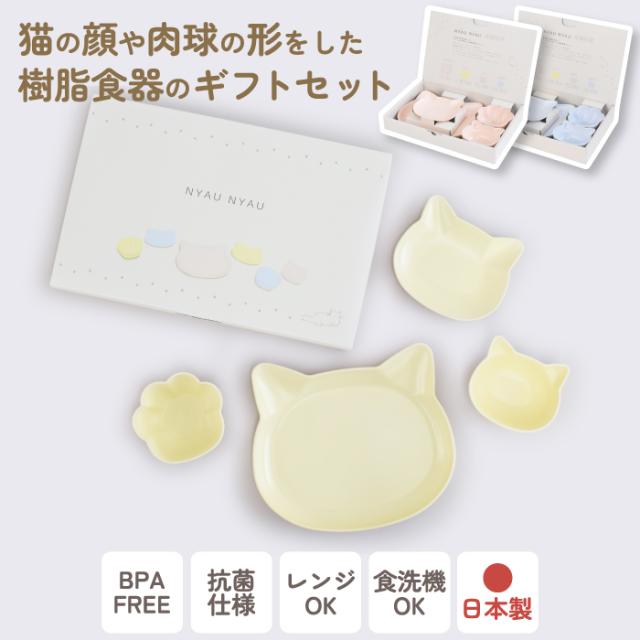 【商品タイトル】: NYAU NYAU 猫 食器 ギフトセット ねこ ランチプレート プレート ボウル 肉球型 食洗機対応 電子レンジ対応 日本製 抗菌樹脂 子ども用 ベビー用 プレゼントに最適