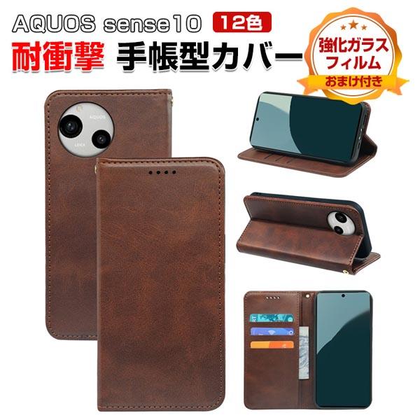 SHARP AQUOS sense10 ケース 耐衝撃 カバー 手帳型 財布型 TPU+PUレザー ストラップホール付き おすすめ スタンド機能 実用 カード収納 便利性の高い 人気 シャープ アクオス センス10 ケース 手帳型カバー CASE 強化ガラスフィルム おまけ付き