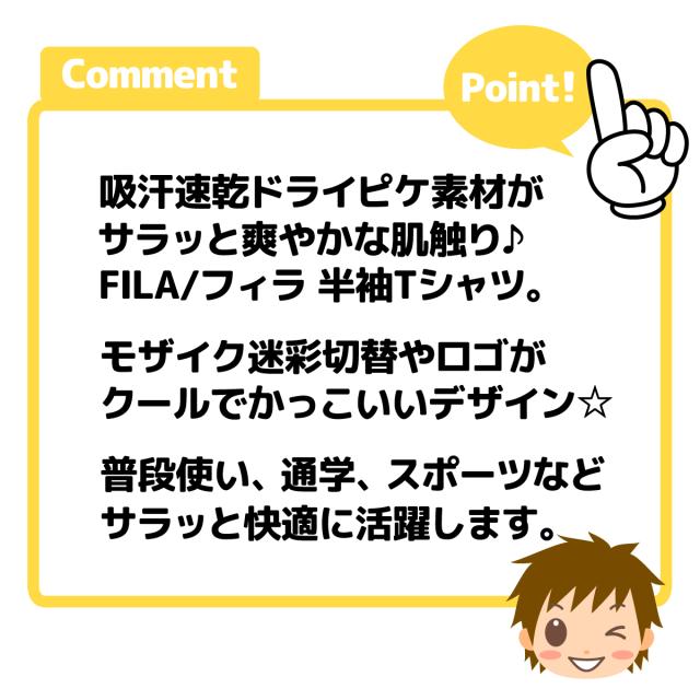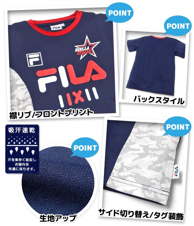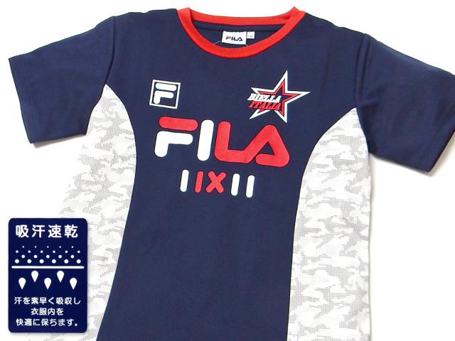 【送料無料】男児 ジュニア 吸汗速乾 半袖 Tシャツ FILA/フィラ ドライピケ モザイク迷彩切替 ロゴ 子供服 男の子 140cm 150cm 160cm iw-1303a-nv【メール便対応】