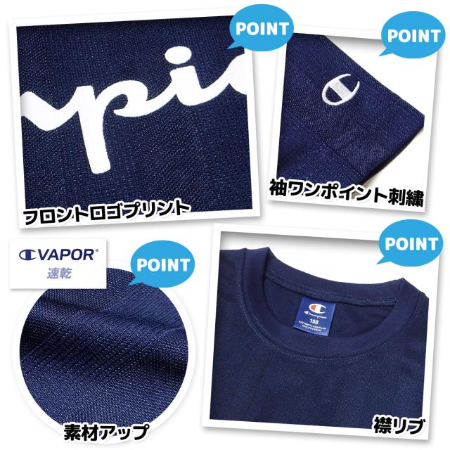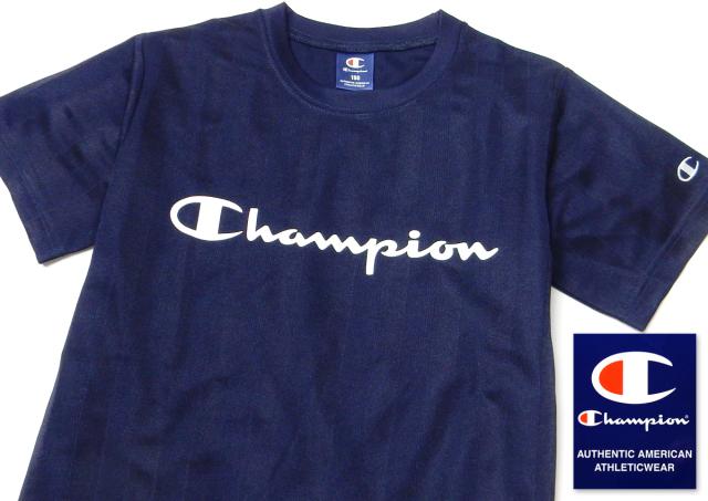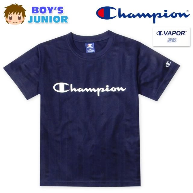 【送料無料】男児 ジュニア 吸水速乾 半袖 Tシャツ Champion/チャンピオン シャドーニット ストライプ ロゴ 子供服 男の子 140cm 150cm 160cm td-0890b-nv【メール便対応】