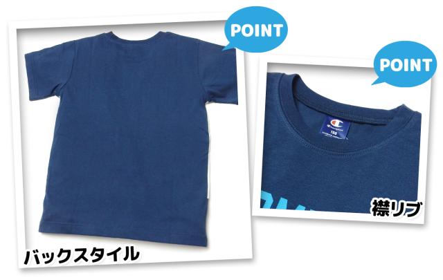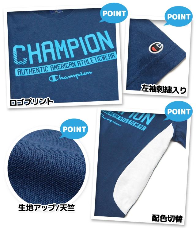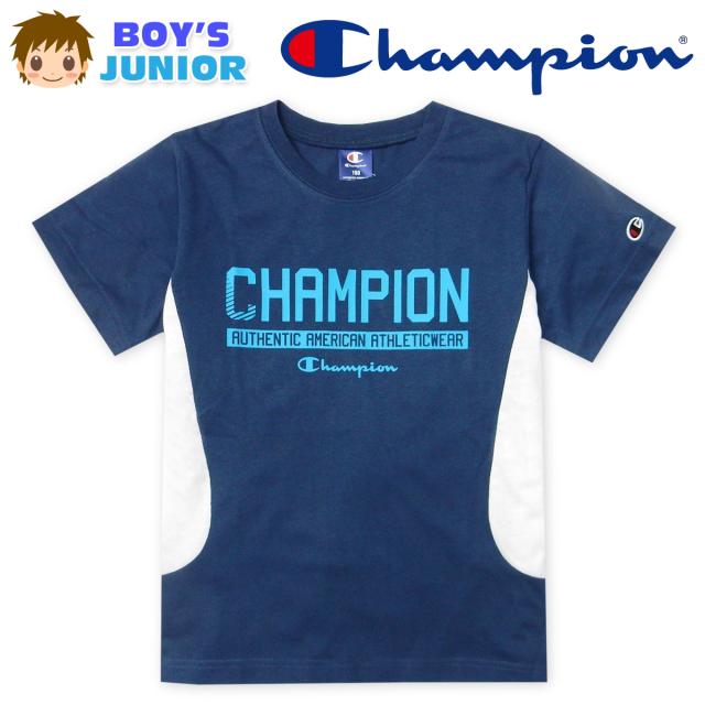 【送料無料】男児 ジュニア 天竺 半袖 Tシャツ Champion/チャンピオン 配色切替 ロゴプリント 刺繍 子供服 男の子 140cm 150cm 160cm td-0892b-nv【メール便対応】