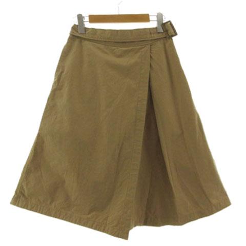 【中古】ビーミングバイビームス ラップスカート風 パンツ ワイドパンツ クロップド丈 ベルト ウエストゴム 茶系 S