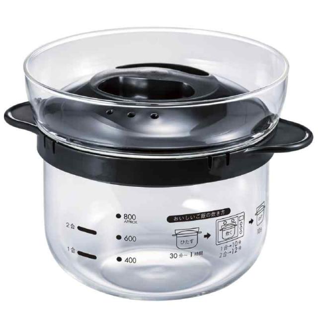HARIO(ハリオ) ガラスのレンジご飯釜1~2合 電子レンジ用 ブラック 1~2合用 日本製 プレゼント ギフト 贈り物 XRCN-2-B