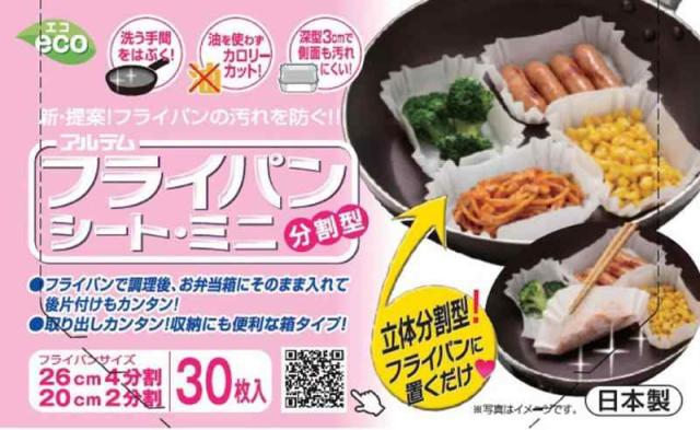 アルテム クッキングシート フライパンシート ミニ フライパン用 分割型 ボックスタイプ シリコン樹脂加工 日本製 30枚入 ホワイト