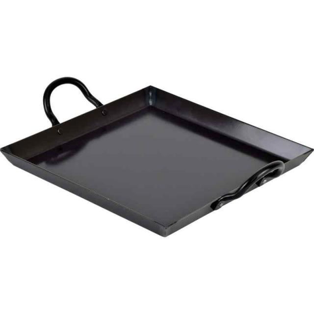 キャンプやアウトドアに携帯しやすいシンプルで手頃なサイズ感の鉄板。