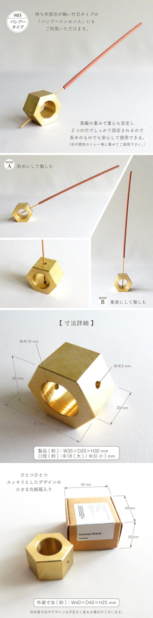 お香立て SIKAKU インセンススタンド ヘキサ 真鍮製 スティックタイプ対応 バンブーインセンス対応 香木タイプ対応 ローカルメイド アロマ フレグランス 雑貨 オブジェ ギフト インテリア