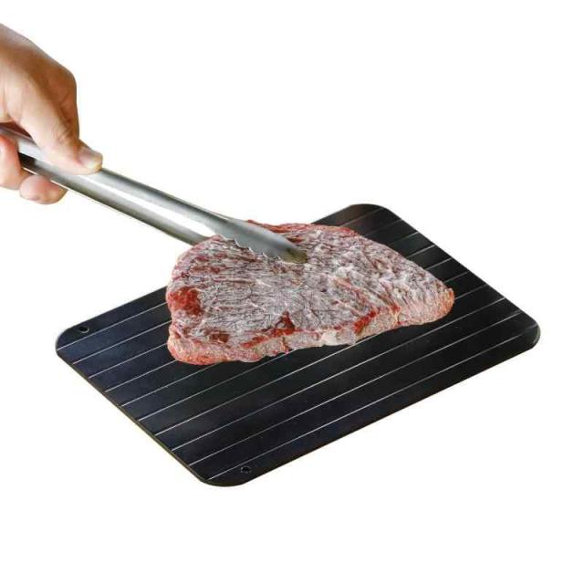 凍った食材をプレートに乗せるだけで簡単に解凍できる「atomico(アトミコ)解凍プレート」熱伝導率の高いアルミ素材で、食材の冷気を吸収・放熱することで素早く解凍