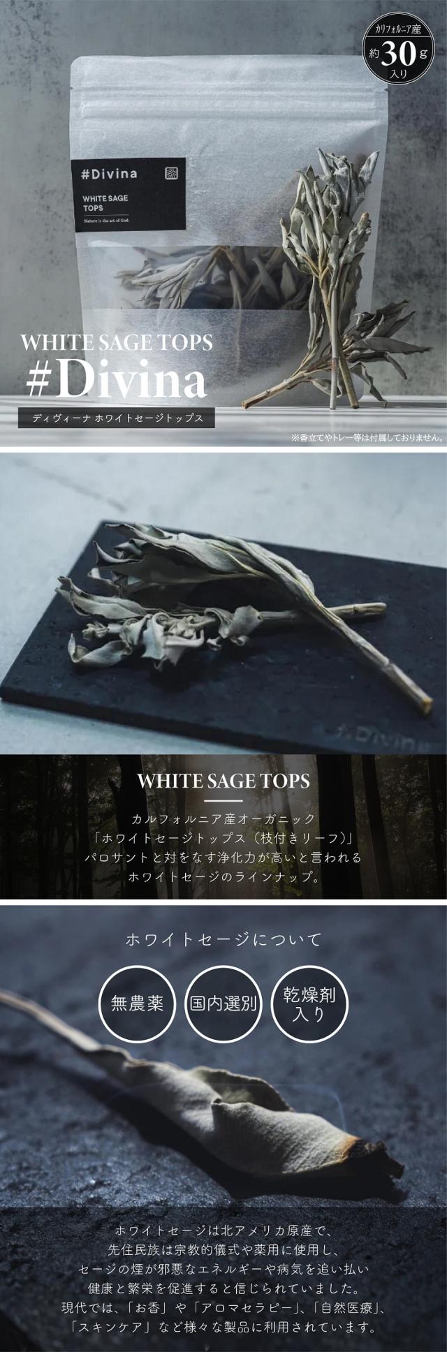アロマ お香 ディヴィーナ ホワイトセージ トップス 30g入り カリフォルニア産 枝付きリーフタイプ オーガニック インセンス フレグランス ヒーリング 浄化 リラックス リラクゼーション 芳香 父の日 ギフト インテリア