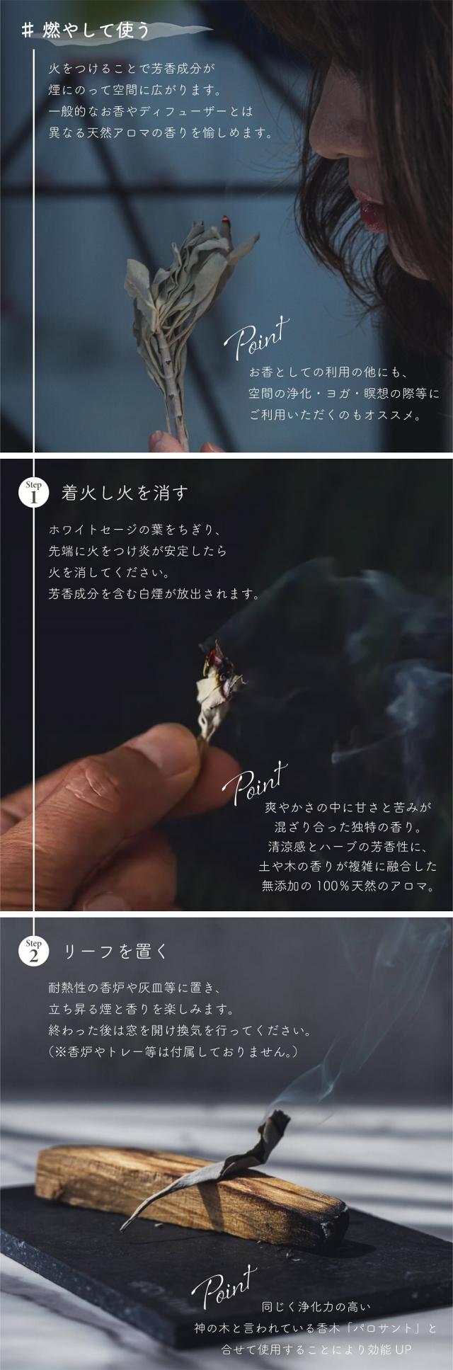 | 素 材 | カルフォルニア産オーガニックホワイトセージ |