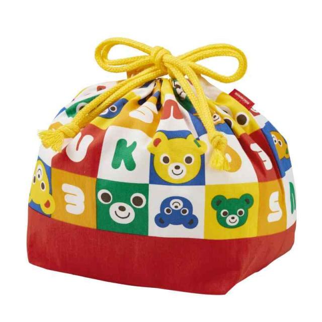 パズルブロックシリーズから、両端の紐を引っ張って結ぶ 巾着 タイプの ミキハウス ランチバック です。底板付きで お弁当 などが傾かずキチンと包める mikihouse お弁当袋 です。 通園 ・ 通学 用にシリーズで集めたくなるストーリー性のあるデザインです。