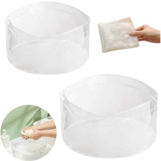丈夫で透明感のある高品質素材 高強度PVC素材で作られた洗面器は、軽量ながら驚きの耐久性を発揮。繰り返し使用しても劣化しにくく、中身を一目で確認できる透明デザインが便利です。
