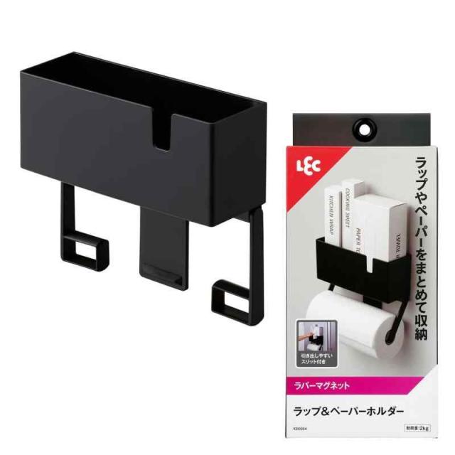 レック ラップ & ペーパーホルダー ブラック (ラバーマグネット) 耐荷重2kg 海外製大型ロールペーパー対応