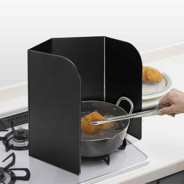 「油ハネを防ぐ4面式」サイズ /真っ直ぐ広げた時:(約)幅73×奥行0.3×高さ32cm 折りたたんだ時:(約)幅18×奥行1.1×32cm 材質 /本体:スチール・(表面フッ素樹脂加工) 商品改良のため、仕様・デザインなどは予告なく変更する場合があります。予めご了承いただきますようお願い申し上げます。