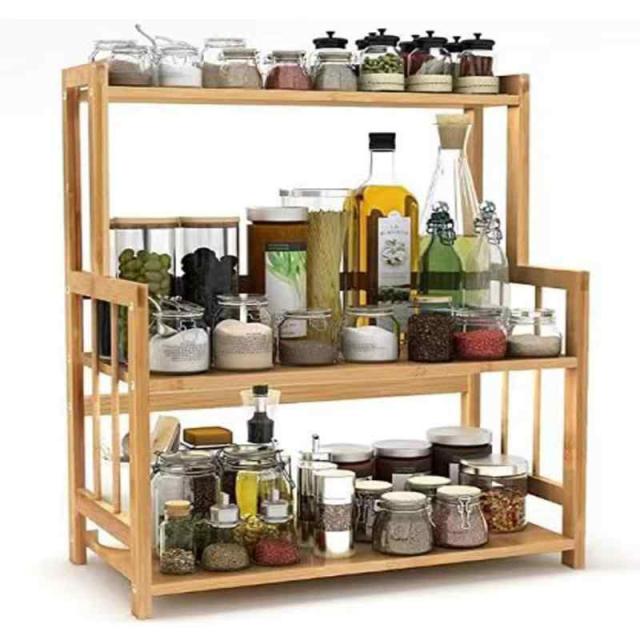 OIWAI キッチンラック 多機能のキッチン収納ラック 花棚 書棚 卓上整理 3段ナチュラル 省スペース 収納ラック 台所収納ラック 調味料棚 包丁収納機能付き 調味料ラック 竹製 (42*18*50cm) (42*18*50cm)