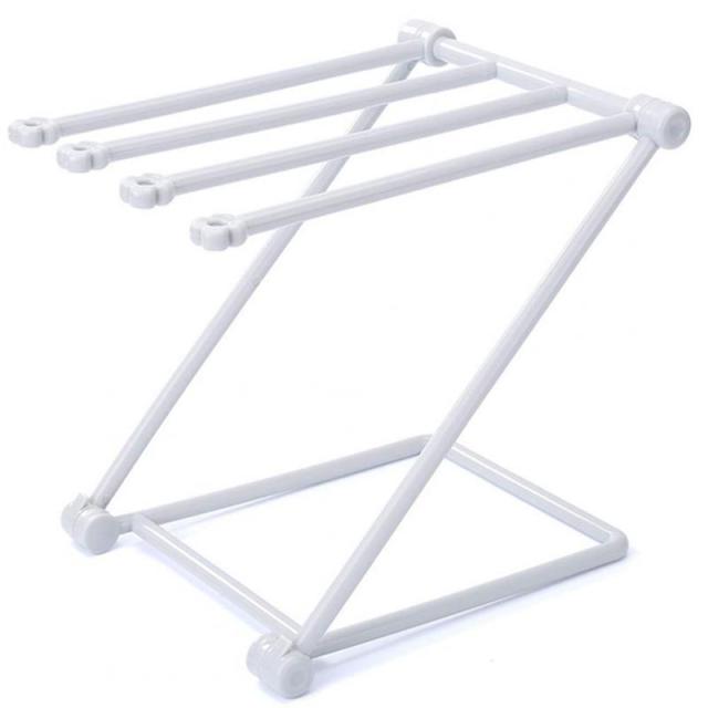 余計な装飾のないシンプルさで人気の折り畳み布巾ハンガーは濡れた布巾を広げて乾かし、使わない時には片付けられます。