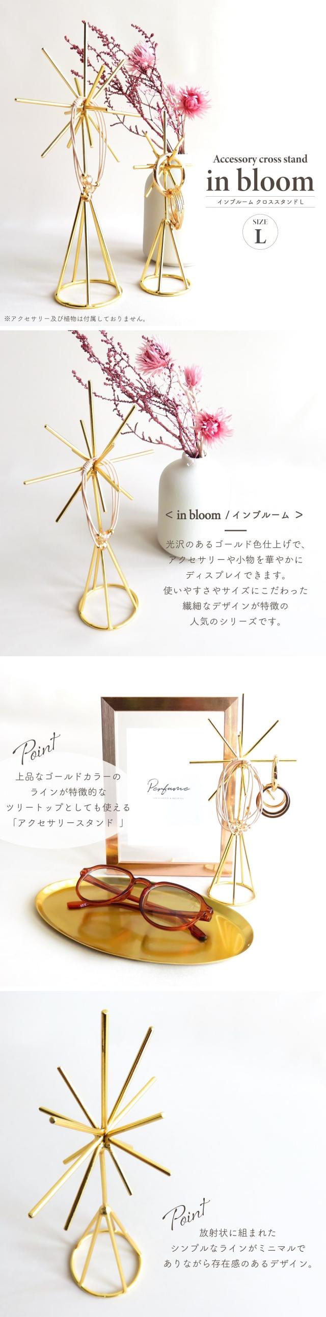 アクセサリースタンド インブルーム クロススタンド L アイアン製 真鍮風 ゴールド仕上げ ディスプレイ 収納 ピアス 指輪 キーホルダー向き ツリートップ ハンドメイド ヴィンテージ調 アンティーク調 雑貨 オブジェ インテリア