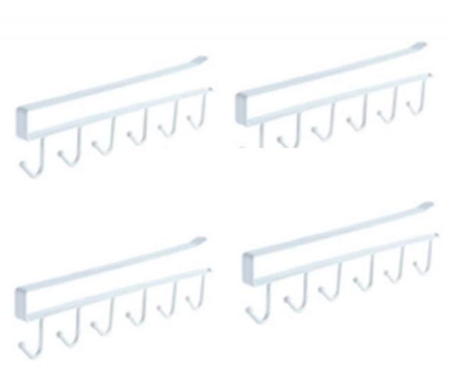 キッチンツールフック(シングル4個セット) 戸棚下キッチンツールフック キッチン収納 キッチン収納 吊戸棚 カップホルダー ラック クローゼット空きスペース有効活用にも便利 棚上部の空きスペースにも (シングル4個 ホワイト)