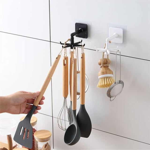 キッチンツールフック キッチン 収納 フック 台所収納フック 穴あけ 不要 フック 壁掛け フック 強力粘着固定 調理器具 収納 キッチン フック6個付き 強力フック キッチン お風呂 ツール 粘着フック 小物フック 360°回転可能 6個フック付き 耐荷