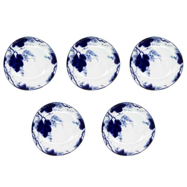 美濃焼 小皿 直径約12cm 5枚セット 磁器 日本製 (藍染ぶどう)