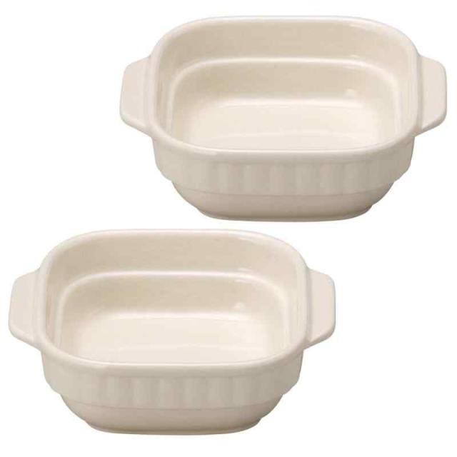 萬古焼 オーブン対応 「ホワイトスタッキング」 正角グラタン 皿 (小) 直径約14cm 2個セット 電子レンジ可 日本製 12397