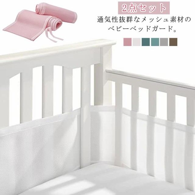 2点セット ベビーベッド用 メッシュ ベビーベッドガード プレゼント 夏用 空気循環可能なベッドガード 赤ちゃん 安全性 サイドガード 収納便利 ケガ防止 洗濯可能 ベッドバンパー 転落防止 布団落下防止 ベビーケア用品 新生児 出産祝い ギフト 通気