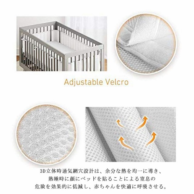 | 2点セット 通気性抜群なメッシュ素材のベビーベッドガード。 3D立体時通気網穴設計は、余分な熱を均一に導き、熟睡時に顔にベッドを貼ることによる窒息の危険を効果的に低減し、赤ちゃんを快適に呼吸させる。また、ベッド全体の清潔さを確保し、粉末粒子の形成が赤ちゃんに吸収されることを防止し、呼吸器系の健康に影響を与える。 高密度の3D弾性繊維と安定した色使いで、弾力性と肌にやさしく、弾力性と柔らかさを兼ね備え、空気に包まれて肌に密着し、赤ちゃんをよりやさしくケアします。環境に優しく、通気性があり、手触りが柔らかく、オールシーズン使用でき、長期間使用できます。 洗える、お手入れが簡単。 【設置が簡単】2つのセクションの組み合わせ、長さ調節可能、さまざまなサイズのベビーベッドに適しています。接続はストラップで設計されており、よりしっかりしていて非常に便利です。 | |