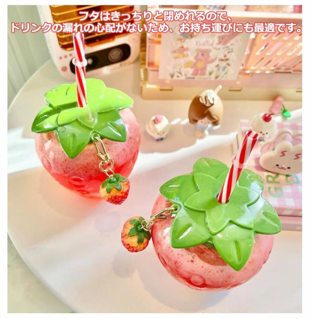| おしゃれで可愛いイチゴ型のウォーターボトル!ストロー+チャーム付き 話題のSNSで映える事間違いなし。 丁度いいサイズ感で使い勝手バツグン♪ フタはきっちりと閉めれるので、ドリンクの漏れの心配がないため、お持ち運びにも最適です。 | |